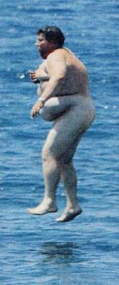 Nell’immagine, Giuliano Ferrara che si butta in una vasca da bagno adatta alle sue dimensioni, in attesa di un trattamento “alla Abu Ghraib”.